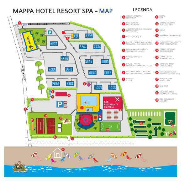 Servizio spiaggia: 1 ombrellone, 1 sdraio ed 1 lettino a camera. NEW: RISPETTARE L'ASSEGNAZIONE DELLA POSTAZIONE PER L'INTERO PERIODO DI SOGGIORNO.